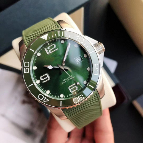Venta caliente de los hombres de moda de lujo reloj mecánico de alta calidad Dial de vidrio ventana banda de goma 22mm ancho de banda 30mm Dial alarma